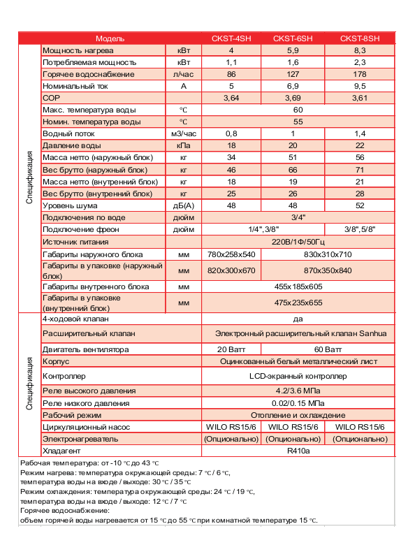 Характерики теплового насоса Повітря-вода Chigo Split CKST-6SH 220V